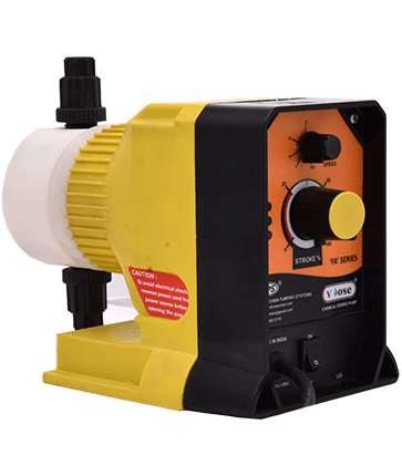 We specialize in designing tough and high performing range of Electromagnetic Dosing Pumps that are used to dose the fluid into the medium with defined volume and accuracy. V Dose Pumps are compact, good aesthetics and cost effective. Our Chemical Dosing pumps finds application in Chemical feed system for dosing Softeners, Cleansing Agents, Acids and Caustics. Glass filled Polypropylene body gives better Chemical resistance and longevity.
