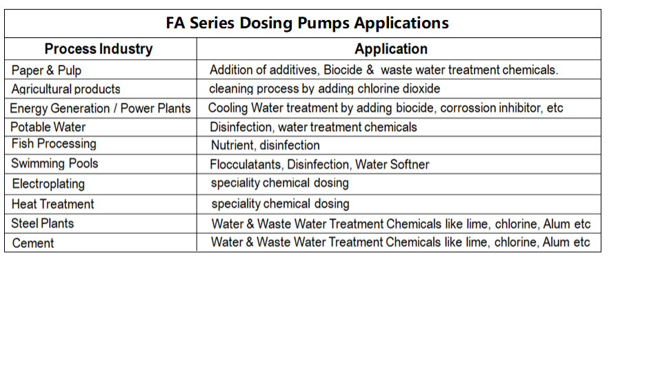 Series FA - Solenoid-driven Metering Pump for injecting liquid media in Water Treatment and Chemical Process.