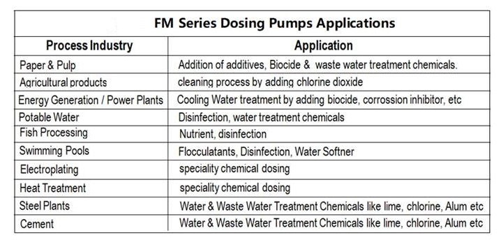 FW SERIES PUMPS ARE DESIGNED TO HANDLE INDUSTRIAL RO PLANTS Chemicals that can be dosed – Anti Scalent, SMBS, Alum, High pH Alkaline based Water Treatment Chemicals