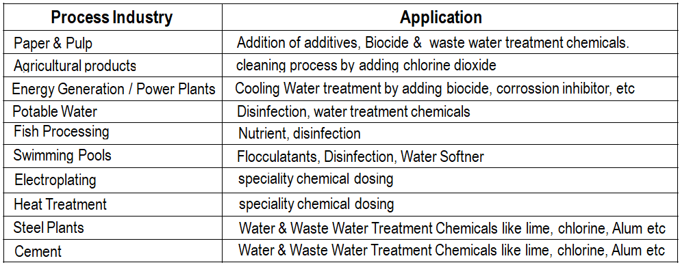 - Wetted parts with available material combinations PP, PTFE, PVC & Stainless steel suitable for dosing extensive range of chemicals.